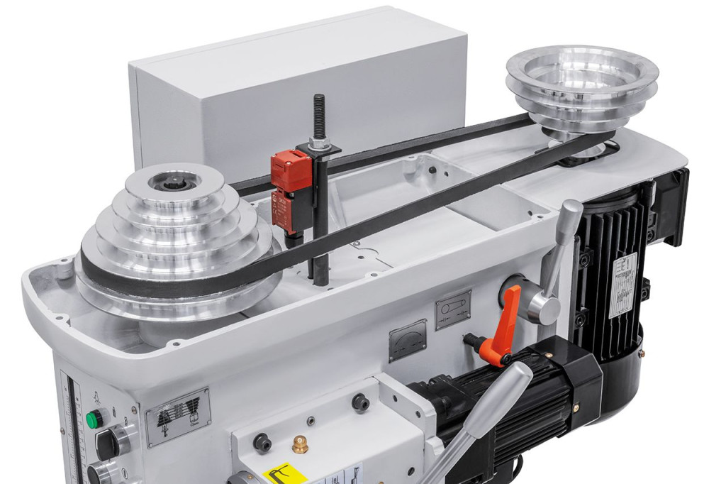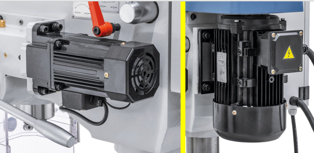 A DMT 32 PF asztali fúrógép alapfelszereltségként menetvágó berendezéssel és automatikus fúróelőtolással van felszerelve.
