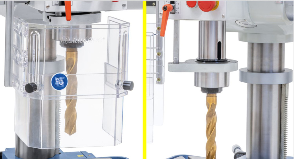 CE szabványnak megfelelő védőburkolat, különböző fúrófej-méretekhez állítható