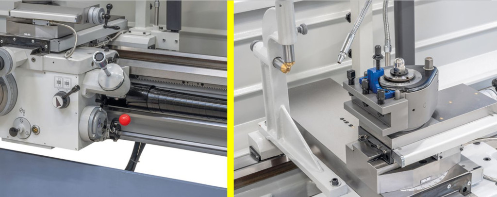A fordulatszám- és előretolási beállítás egyszerű felépítésű, könnyű menetű és precízen kapcsolható