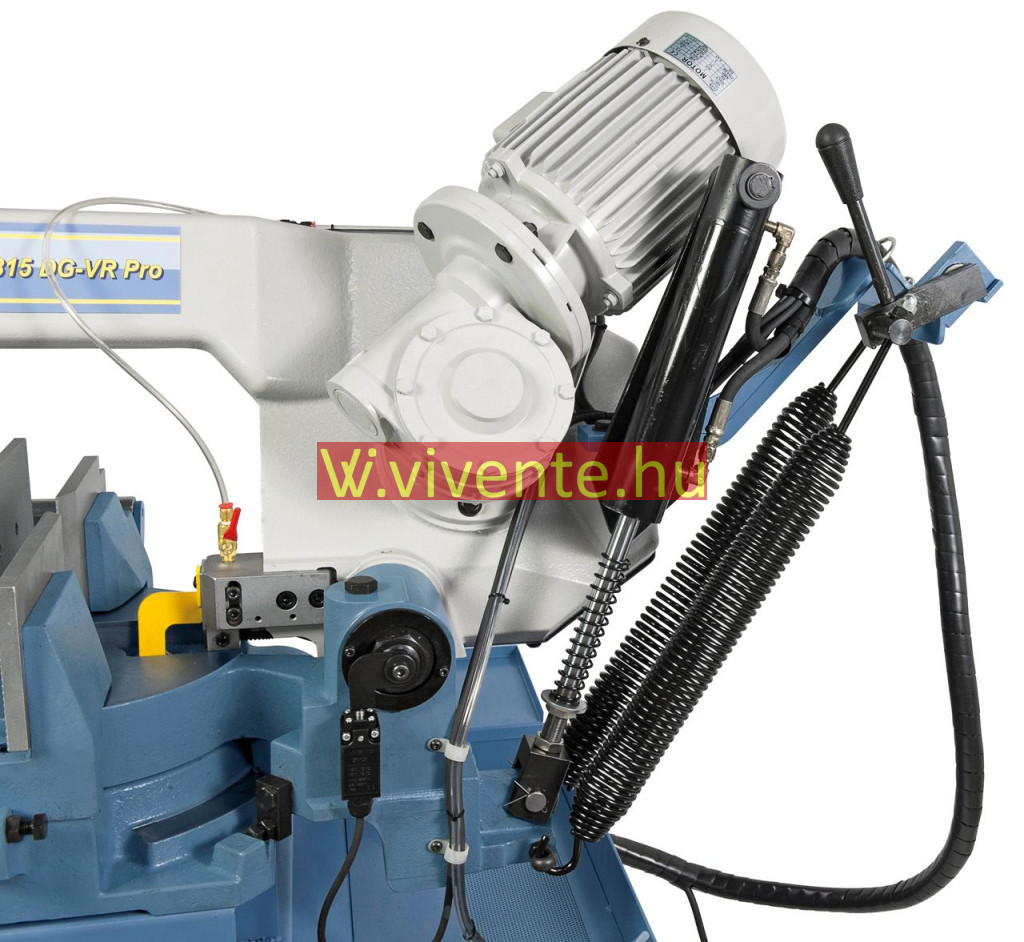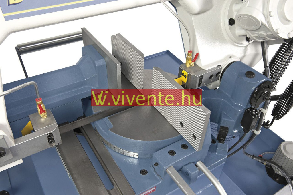 Az MBS 315 DG-VR PRO kettős-sarkalószalagfűrésznek megvan az az előnye, hogy az elforgatható satu egyidejűleg együtt mozog a fűrészkengyellel.
