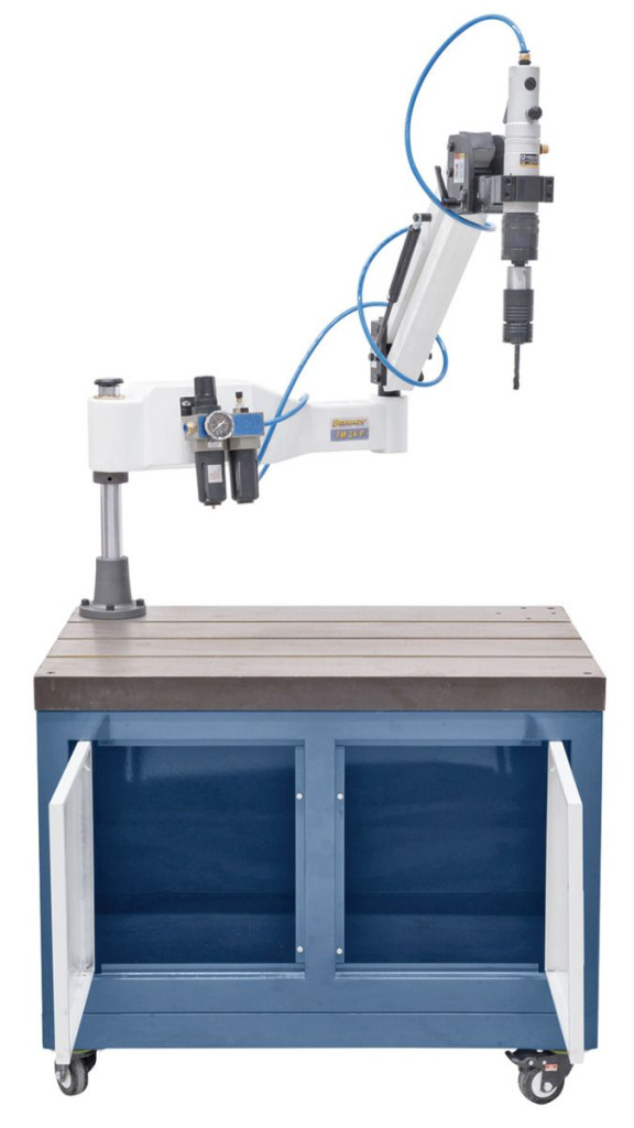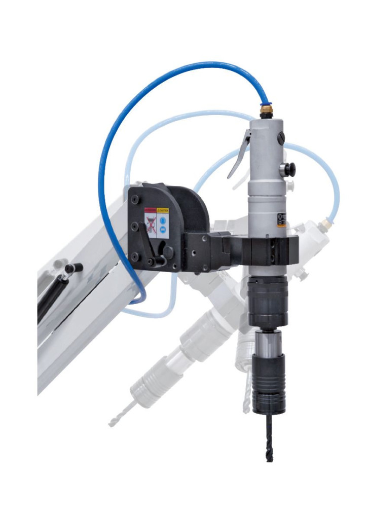 Tartalmazza a nagy sugarú forgó kart, hogy a menetfúró a munkadarabon könnyen elhelyezhető legyen