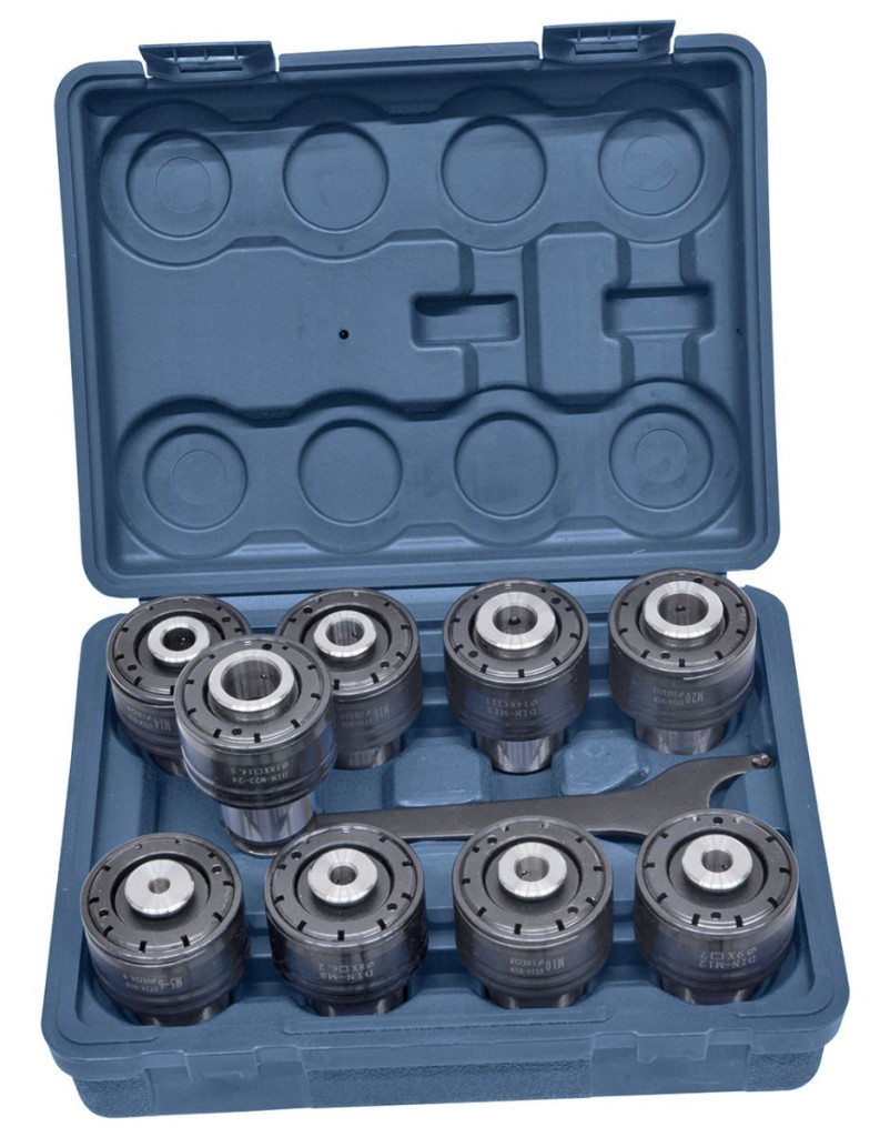 Tartalmazza a gyorscserélő tokmányt a menetvágó alkalmazáshoz átmenő és zsákfuratok esetére