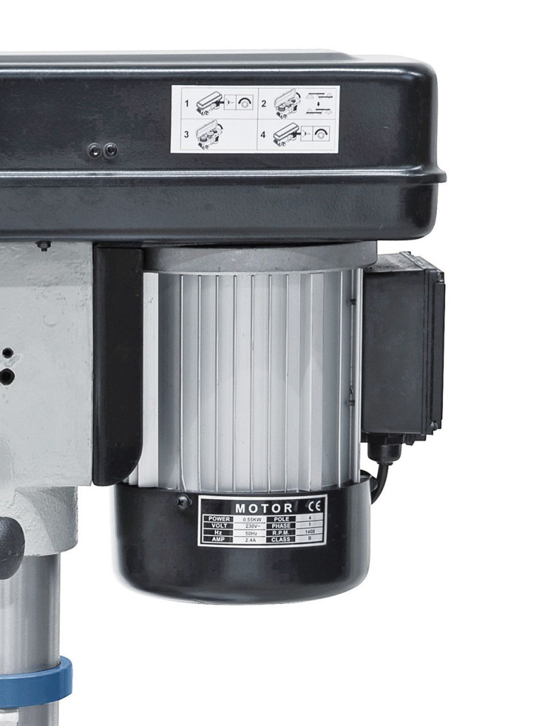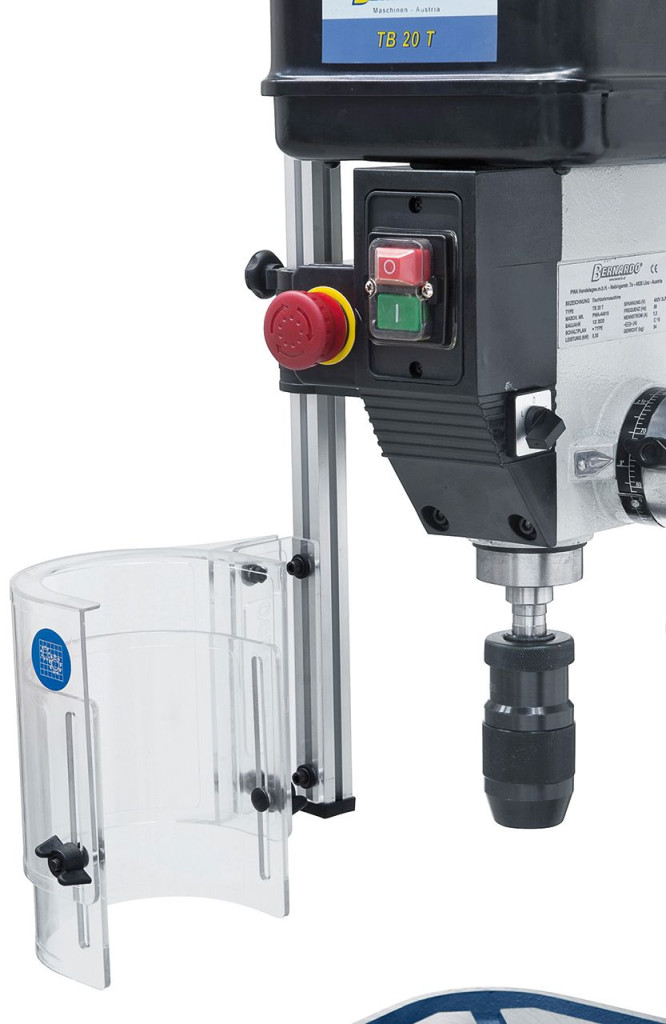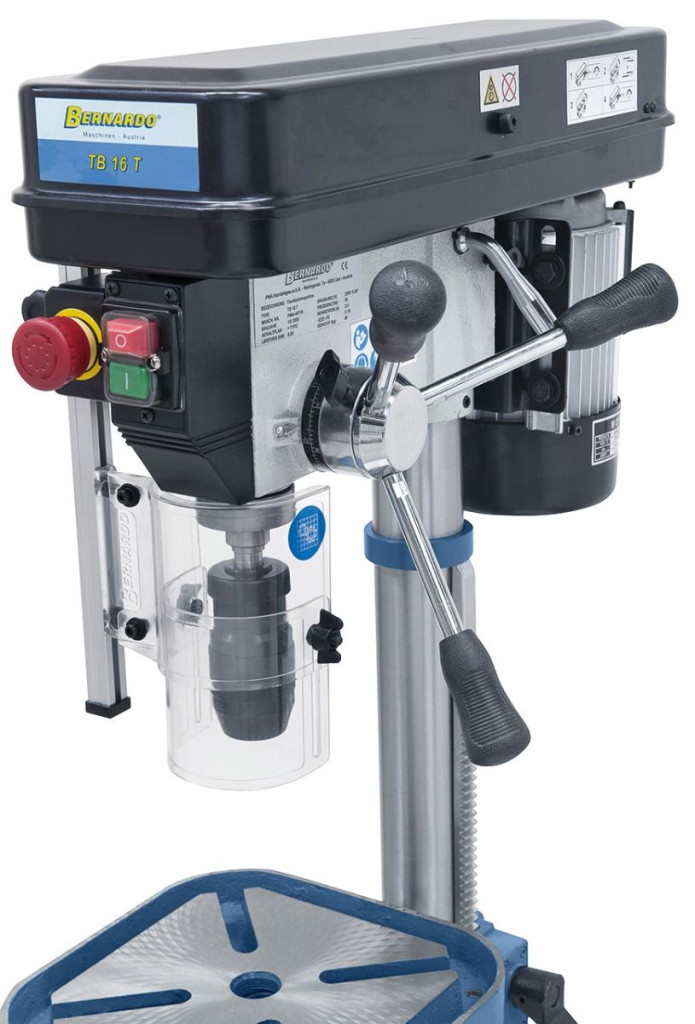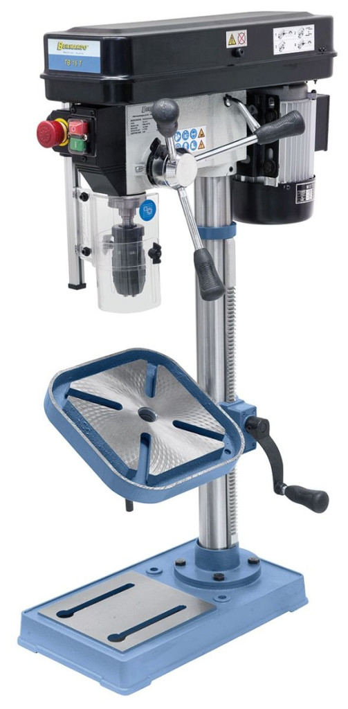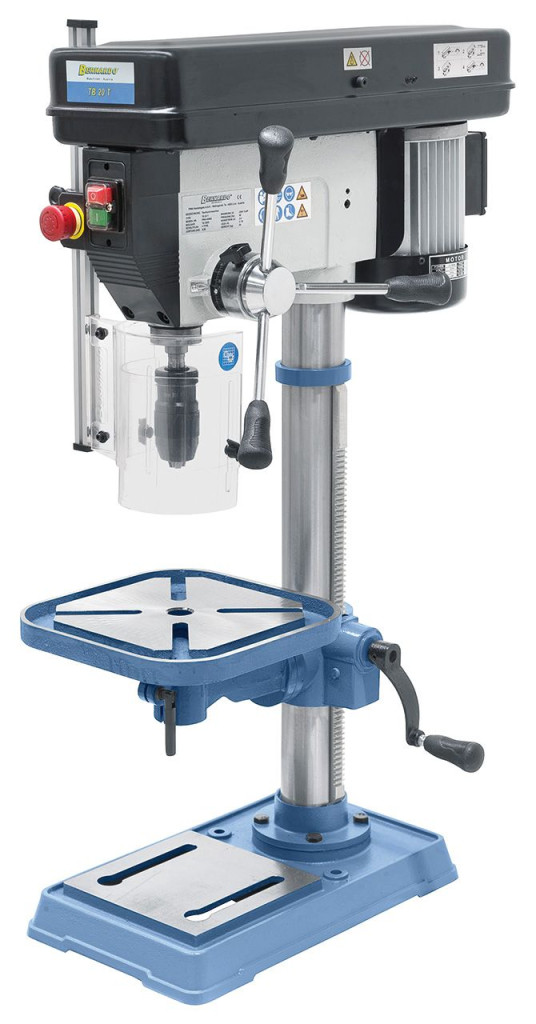 A jutányos árú asztali fúrógép TB 20 T ékszíjmeghajtóval választható módon 230 V, ill. 400 V szállítható.