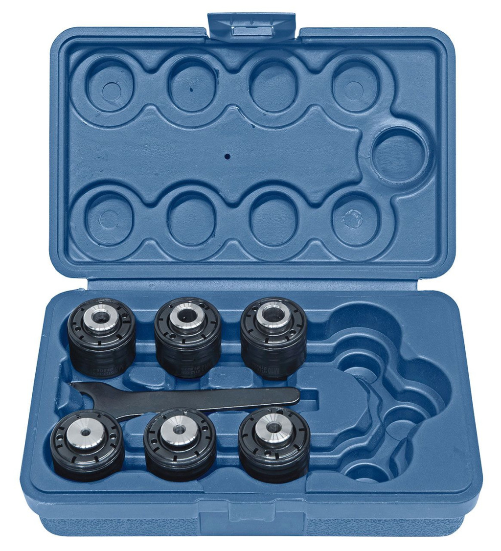 Tartalmazza a gyorscserélő tokmányt a menetvágó alkalmazáshoz átmenő és zsákfuratok esetére