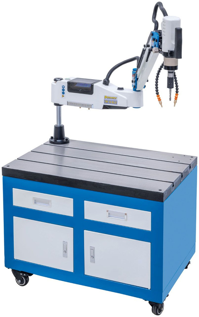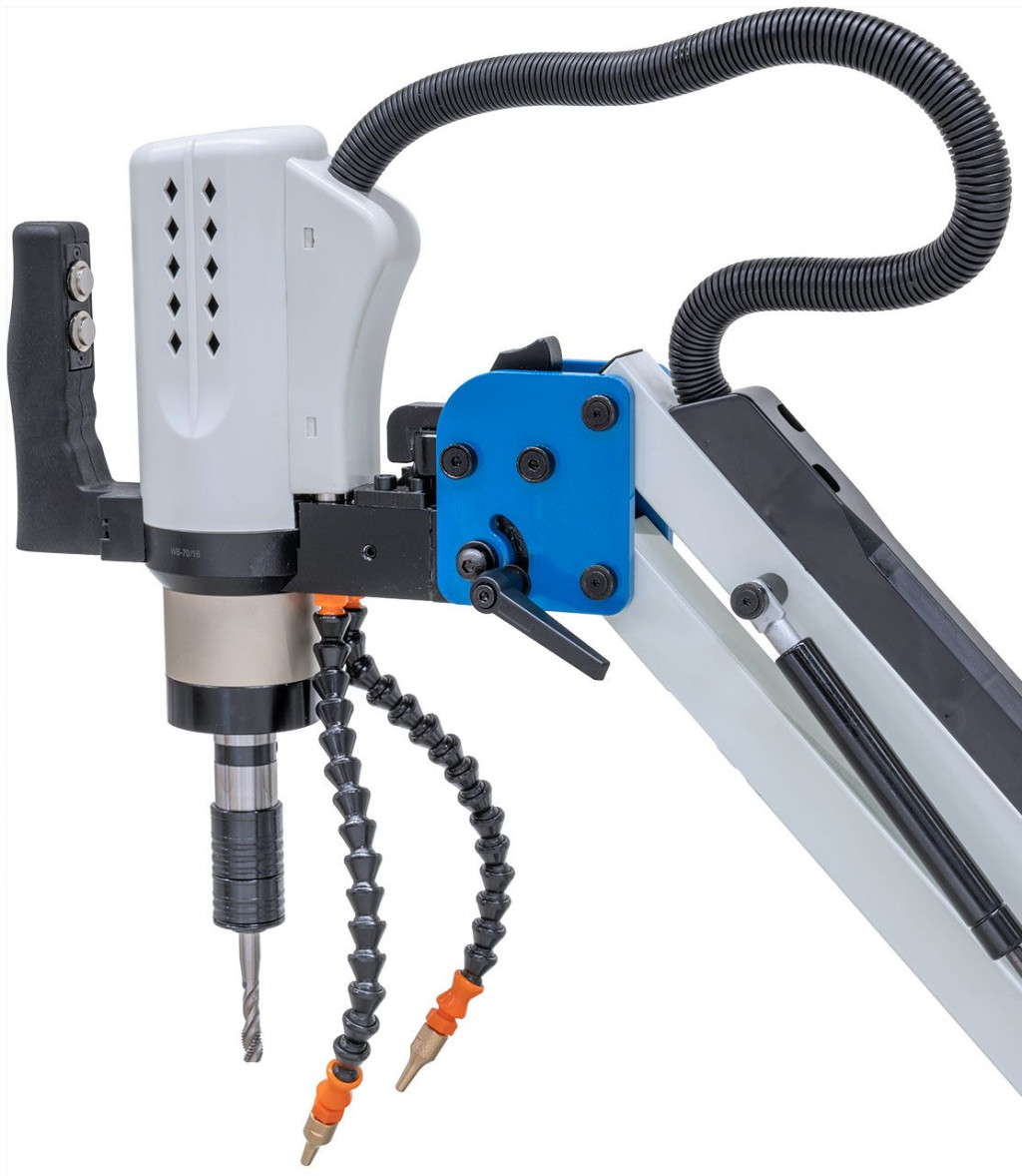Tartalmazza a nagy sugarú forgó kart, hogy a menetfúró a munkadarabon könnyen elhelyezhető legyen