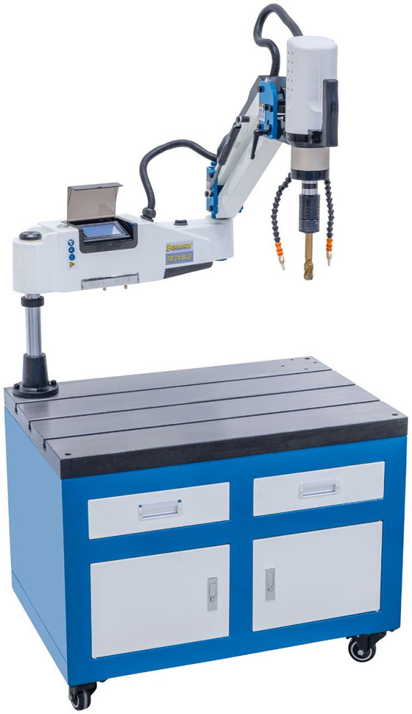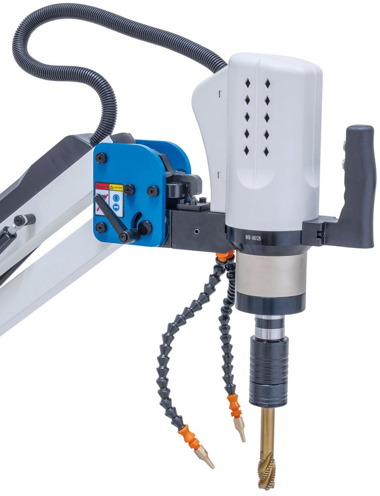 Tartalmazza a nagy sugarú forgó kart, hogy a menetfúró a munkadarabon könnyen elhelyezhető legyen