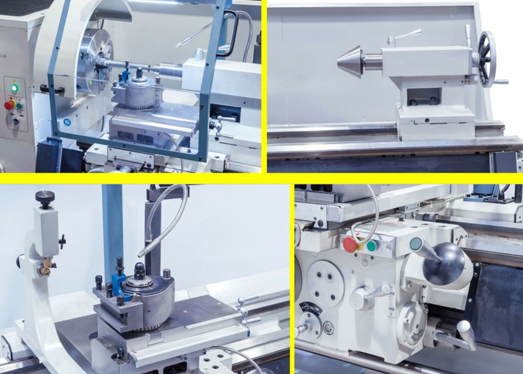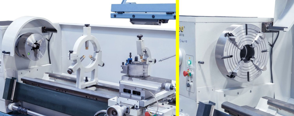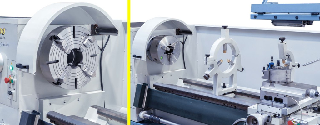 Már az alapfelszerelés tartalmaz minden fontos tartozékot (3-pofás tokmány, lünetták, váltókerekek, 3-tengelyes helyzetmutató, gyorsváltó-szerszámtartó), amik által ez a gép univerzálisan alkalmazható.