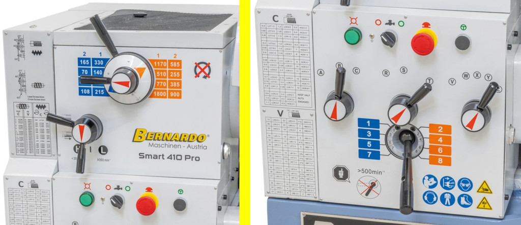 A fordulatszám- és előretolási beállítás egyszerű felépítésű, könnyű menetű és precízen kapcsolható
