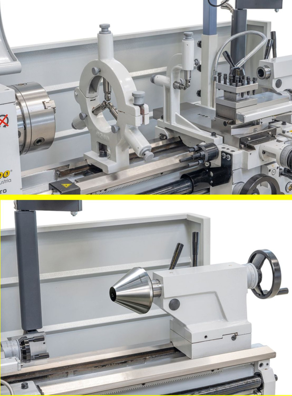 Már az alapfelszerelés tartalmaz minden fontos tartozékot (3-pofás tokmány, lünetták, váltókerekek, ...), melyek által ez a gép univerzálisan alkalmazható.