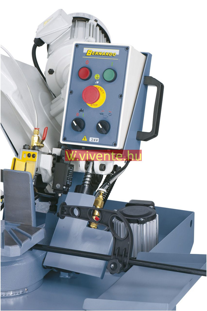 Golyóscsapágyas fűrészszalag-vezető gyorsállítóval a munkadarab szélességéhez való igazodáshoz, optimális munkaeredményt garantál.